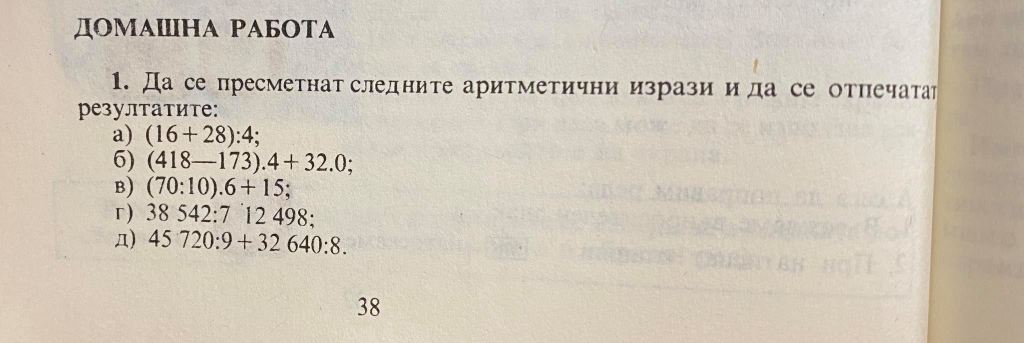“With print, values of several arithmetic expressions and several texts can be printed. If the separator is a semicolon, the value of the arithmetic expression and the text appear next to each other on the screen; if it is a comma, the computer automatically separates them from each other with intervals”. [source: “I program at 9 years old”, Narodna prosveta, Petar Stanchev, 1987] Let’s also see an example to understand how the dot and the semicolon work when we want to separate or join some text and arithmetic expressions .