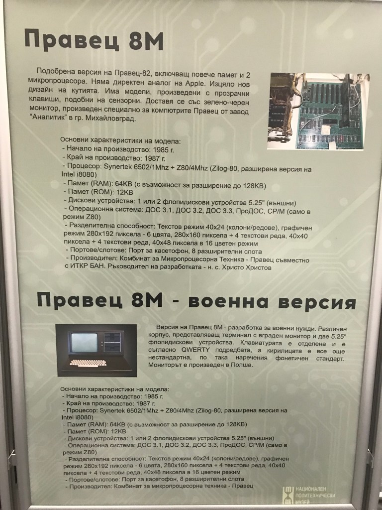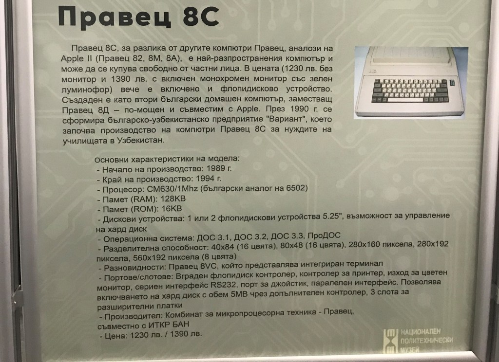 On May 19 2019, I attended an extremely interesting event – an exhibition of Pravetz computers at the National Polytechnic Museum in Sofia. When I found out about this event (I think I saw it on Facebook) I immediately saved the date on my calendar and couldn’t wait to go. As a child and as a student, I never had the pleasure of touching a real Pravetz computer and I had never seen one live. It was because of this that I was convinced there was a lot to learn from the event, and I wanted to touch a part of Bulgaria’s technical past and history, as a self-respecting enthusiast on the topic of vintage technology.