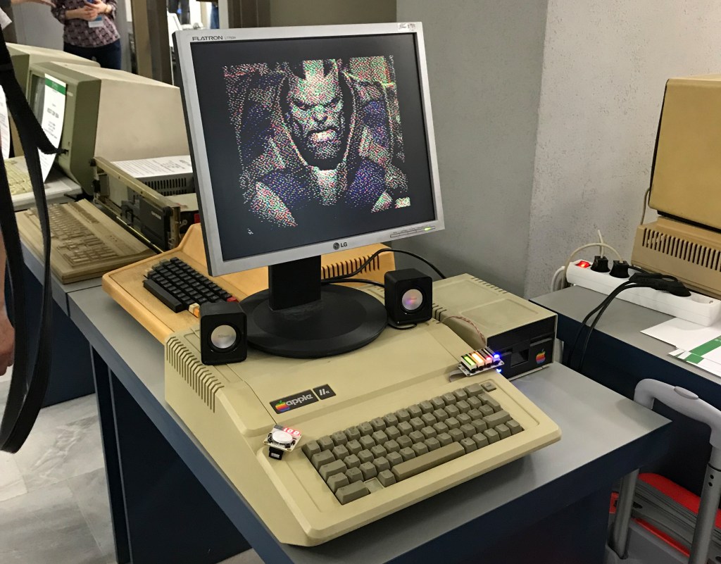 And here I am, satisfied on the next picture, having seen and read everything from the exhibition, and already unwinding – playing Karateka on Pravetz 8C. It was so exciting, awfully slow (as it is fashionable to say today – “It was lagging so much that it was as if I was playing in screenshots), except that this is not lag, but the maximum that the machine is capable of with its limited amount of resources. Still, I had a lot of fun. If you want to play Karateka and go back in time, this is a link to a site where you can play it online: https://playclassic.games/games/action-dos-games-online/play-karateka-online/play/