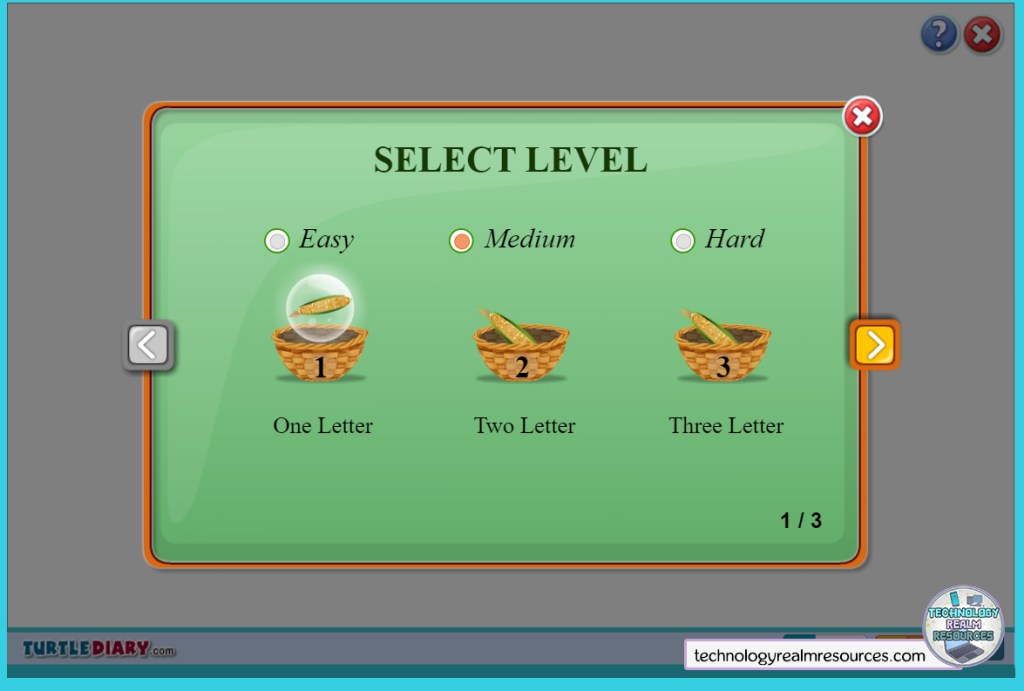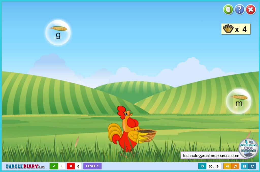 A very cute game is going to be the last one I recommend for this post. It’s called Farm Typing and it’s about feeding a chicken with some corn. Bubbles filled with delicious corn rise up to the sky, and when the student presses the letter that is written in the bubble, it pops and the chicken catches it. It has different levels when you gather a specific amount of corn.