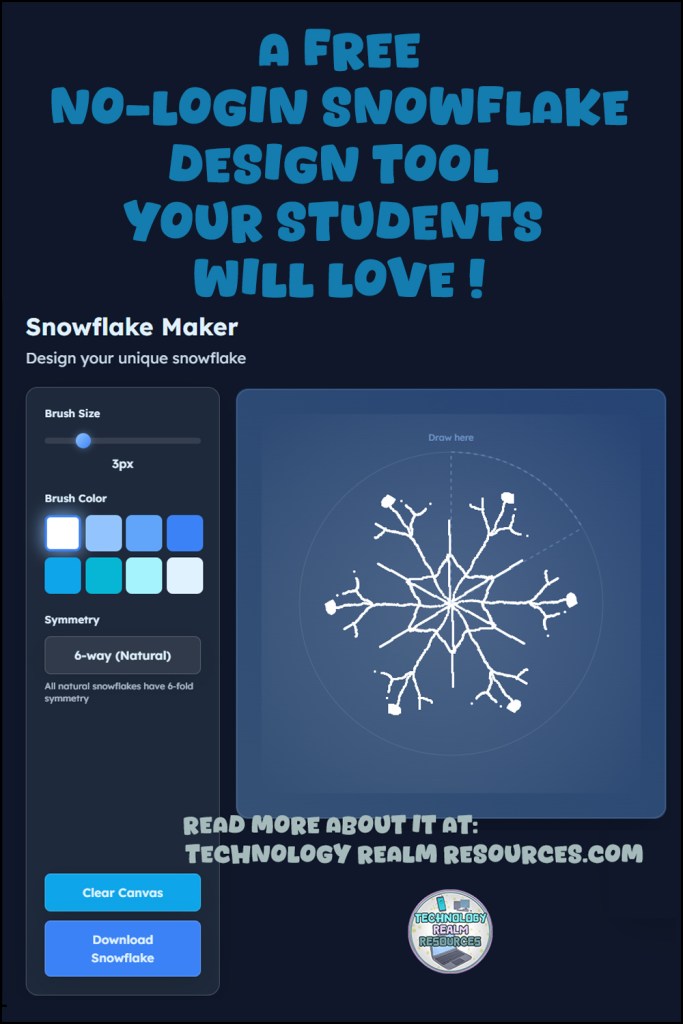 I was browsing the Internet on a cold December day, and I accidentally stumbled upon a quick, creative brain break – a fun mini-project for my class! The snowflake maker I am about to show you is a simple online tool that lets students design their own snowflakes—completely free, no registration required, and with instant downloads. How cool is that? Here’s a link to the tool:
